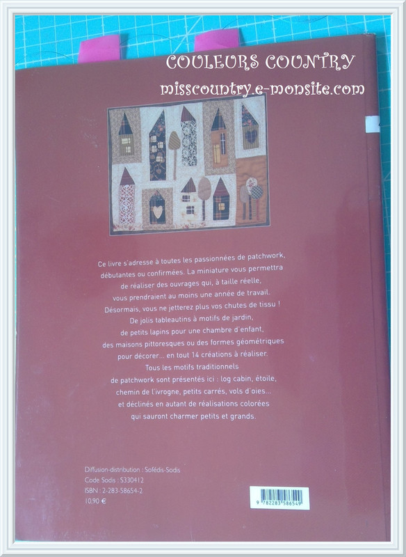 Les modèles qui y sont proposés, vous permettent d'utiliser de petites chutes de tissu pour réaliser les ouvrages dans un style naïf, à défaut de faire de grand couvre lit, Cécile Franconie crée des couvres lits pour poupée, de mini-sampler, une trousse, des panneaux pour chambre d'enfant, le tout en utilisant la technique de l'appliqué, du piécé, le log cabin, la broderie, les rubans, dans des couleurs chaudes comme le marron, l'orange, le beige, le jaune, le bordeau.