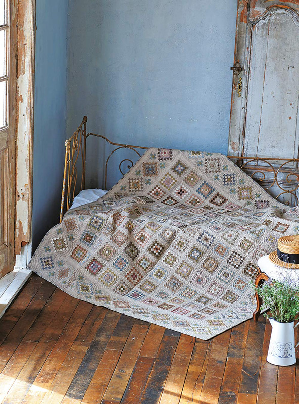Elle a puisé au commencement, son inspiration dans les quilts anciens (j'ai retrouvé d'ailleurs, un livre dans une boutique/brocante de livre au Japon, livre datant de 1994 "Country quilt").